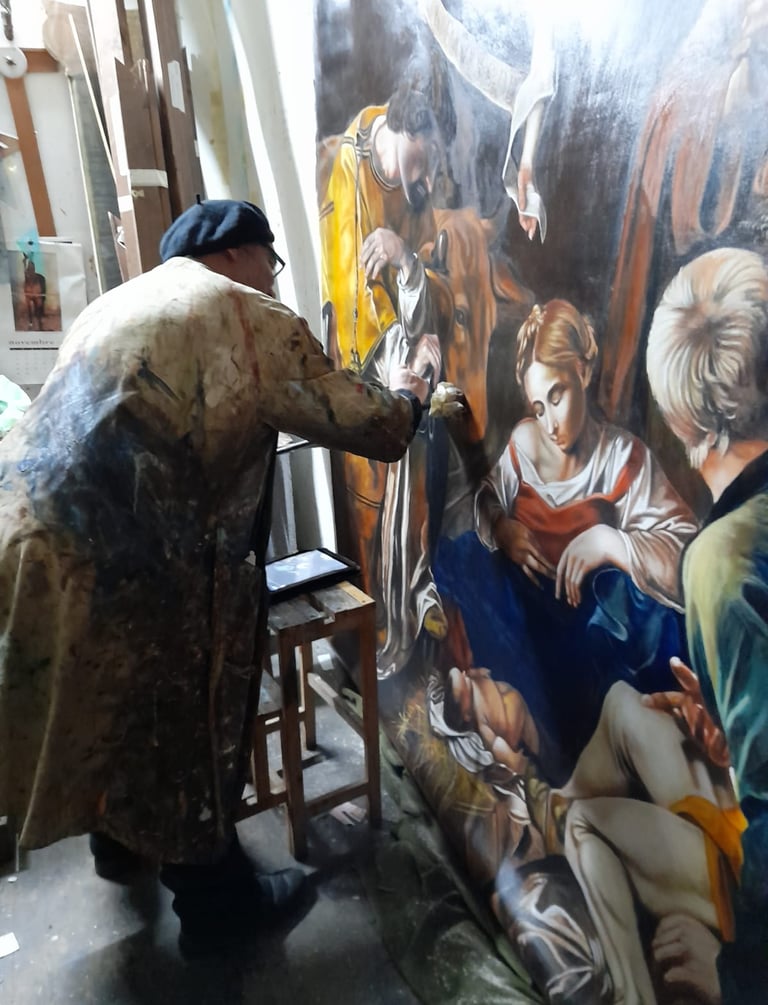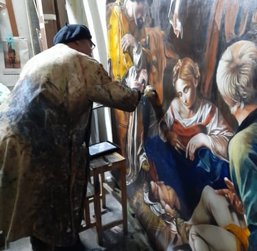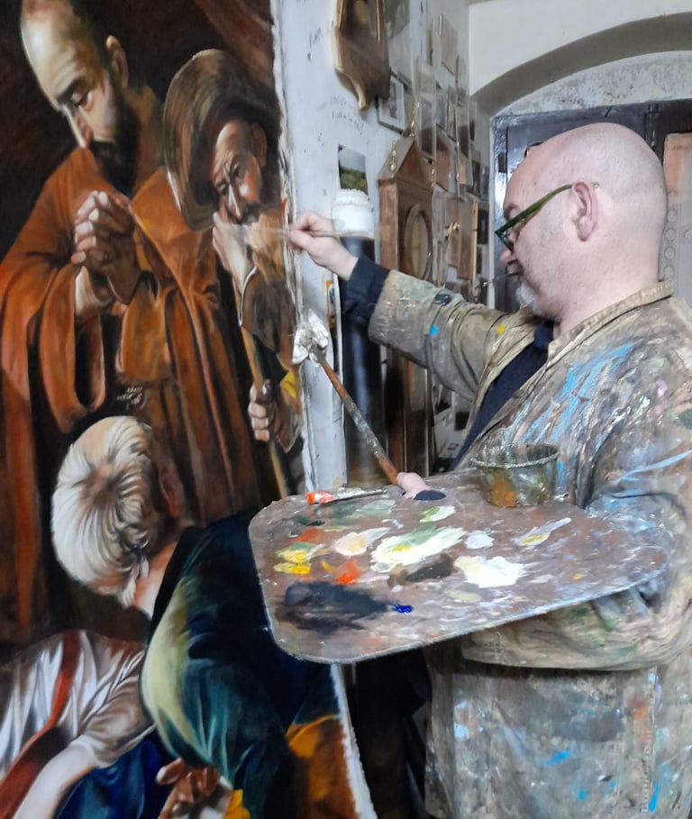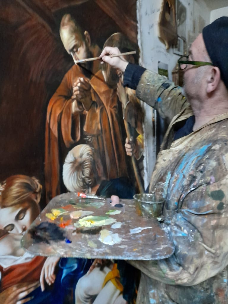 La sua ricerca artistica lo ha portato a perfezionare la tecnica caravaggesca, realizzando riproduzioni fedeli di opere del Seicento italiano. Finalista in diverse edizioni del "Concorso Cairo”, ha esposto in rassegne nazionali e internazionali, consolidando il suo ruolo di interprete del Barocco. Oggi, oltre alla pittura e al restauro, insegna in numerosi istituti d’arte, tramandando il suo sapere alle nuove generazioni. La sua arte fonde tradizione e innovazione, con una costante ricerca della perfezione tecnica.