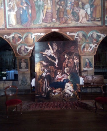 L’arte dell’inganno visivo trova in Cazzolla un interprete raffinato e meticoloso. La sua formazione presso l’Institut Supérieur de Peinture Van der Kelen-Logelain di Bruxelles gli ha permesso di padroneggiare le tecniche fiamminghe del finto marmo, finto legno e decorazioni prospettiche, dando vita a superfici dipinte che ingannano l’occhio con straordinaria verosimiglianza. Le sue opere decorano interni prestigiosi, chiese ed edifici storici, confermando il suo talento nella pittura illusionistica.