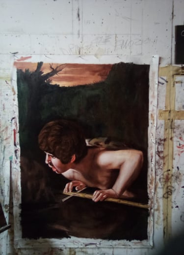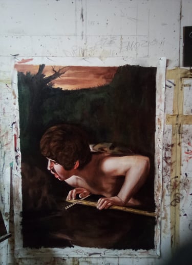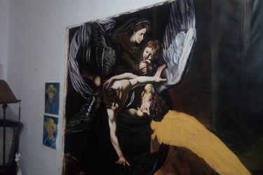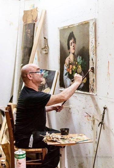 Filippo Maria Cazzolla si distingue per la sua straordinaria capacità di reinterpretare l’opera di Caravaggio con un’aderenza tecnica e stilistica che va oltre la semplice riproduzione. Il suo approccio è profondamente filologico: non si limita a replicare i soggetti, ma penetra nelle dinamiche pittoriche del Maestro lombardo, studiandone ogni dettaglio con un rigore quasi maniacale.