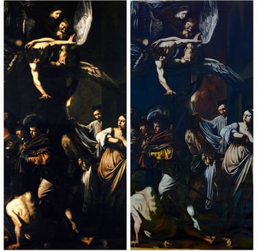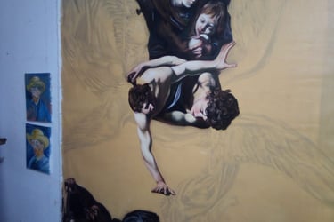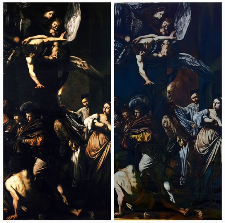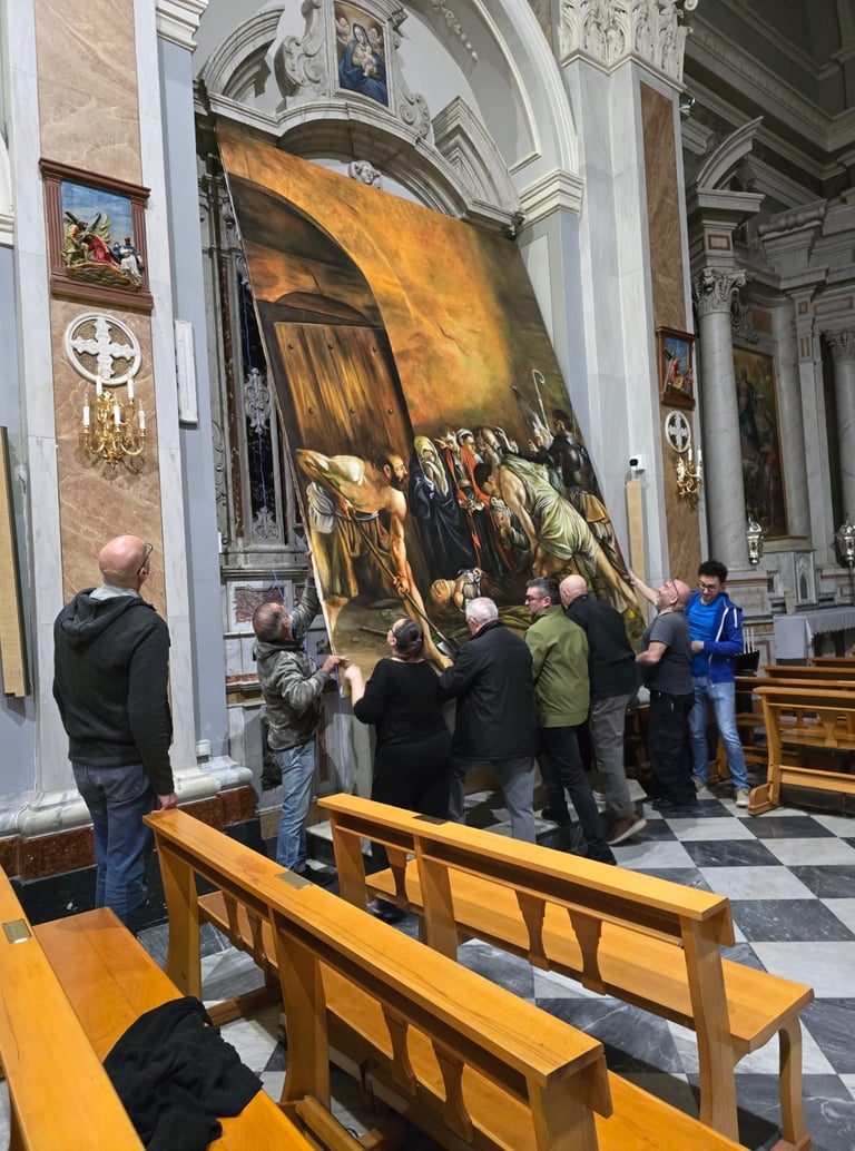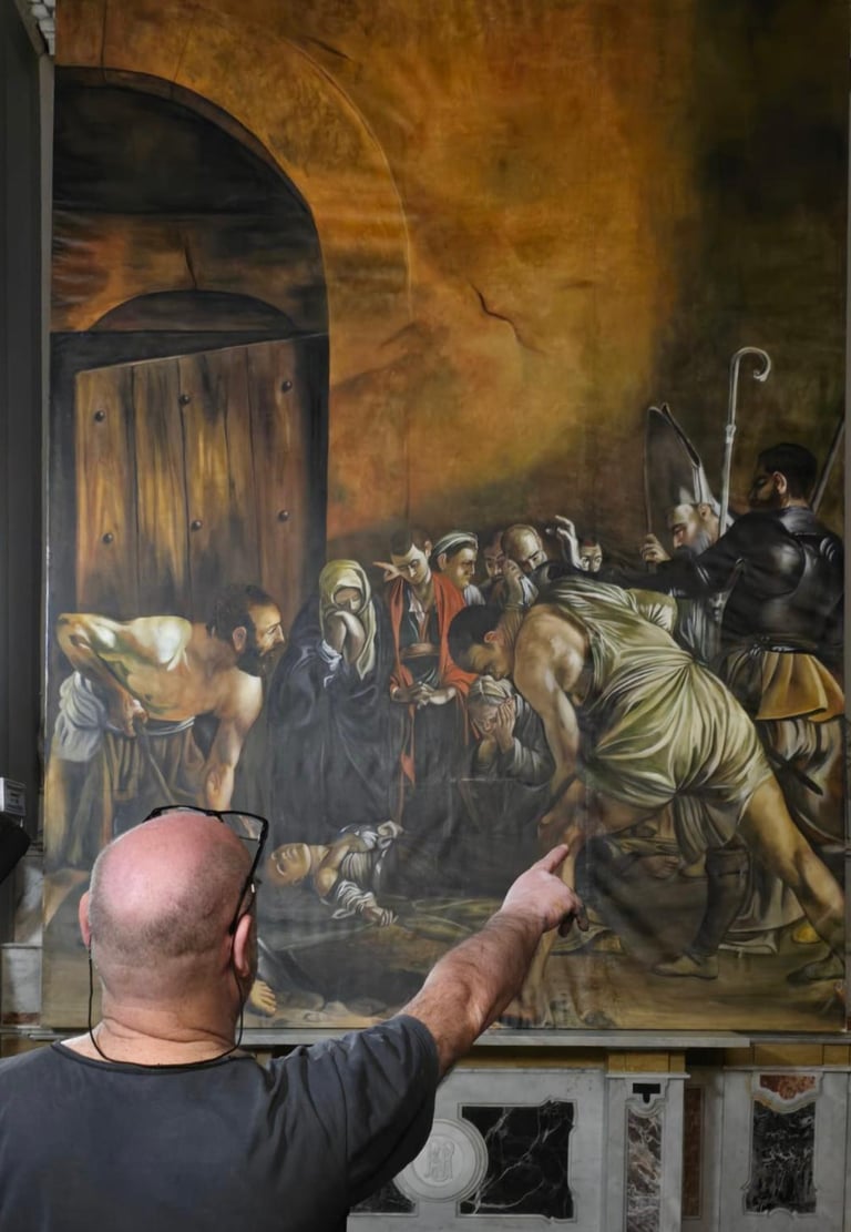Di seguito, le foto del confronto con l'opera originale e l'esposizione del quadro presso la Chiesa di San Rocco, Gioia del Colle (BA).