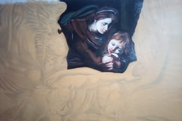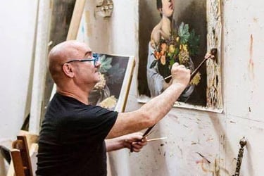 Per ottenere questa fedeltà, il maestro Cazzolla utilizza tecniche che ricalcano fedelmente quelle delle botteghe del Seicento. Prepara le tele con imprimiture scure che intensificano la profondità dei toni e lavora con velature sovrapposte per raggiungere quella morbidezza pittorica tipica del caravaggismo. Le espressioni dei volti, le posture e le mani raccontano emozioni con una forza visiva impressionante, catturando l’essenza umana con una resa psicologica che rende ogni opera viva e vibrante.