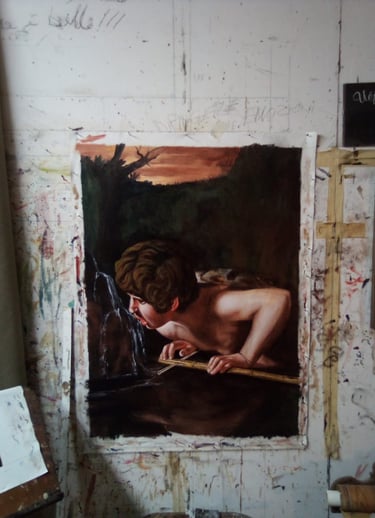 L’attenzione ai dettagli è straordinaria: i riccioli dei capelli, la tensione dei muscoli, la delicatezza delle mani che sfiorano l’acqua restituiscono un realismo vivido. Con questa opera, Caravaggio unisce misticismo e umanità, creando un’immagine di straordinaria forza evocativa.