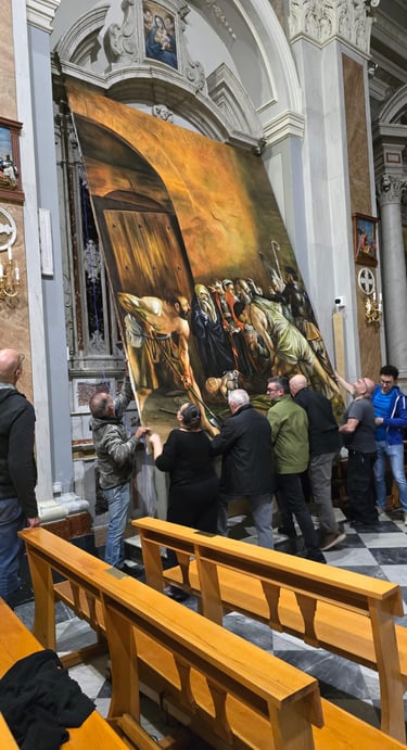 Di seguito, l'esposizione dell'opera presso la Chiesa di San Francesco, Gioia del Colle, (BA).