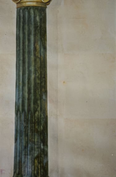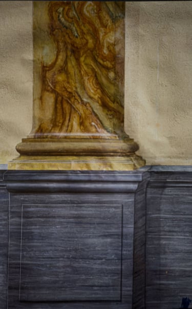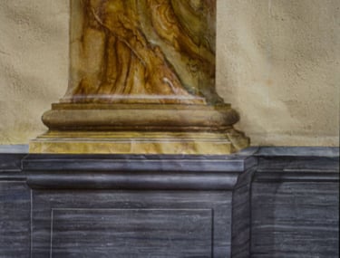 Il Maestro Filippo Maria Cazzolla ha fatto del trompe-l'œil una delle sue più raffinate espressioni artistiche, trasformando ogni superficie in un’illusione perfetta della realtà. La sua formazione presso l’Institut Supérieur de Peinture Van der Kelen-Logelain di Bruxelles, rinomata scuola di pittura decorativa e fiamminga, gli ha permesso di sviluppare una padronanza assoluta di questa tecnica, rendendolo un interprete d’eccezione dell’arte illusionistica. Qui ha approfondito lo studio delle superfici pittoriche, specializzandosi nella riproduzione di materiali come il finto marmo, il finto legno e il trompe-l'œil architettonico, affinando il suo approccio al dettaglio e alla resa prospettica.